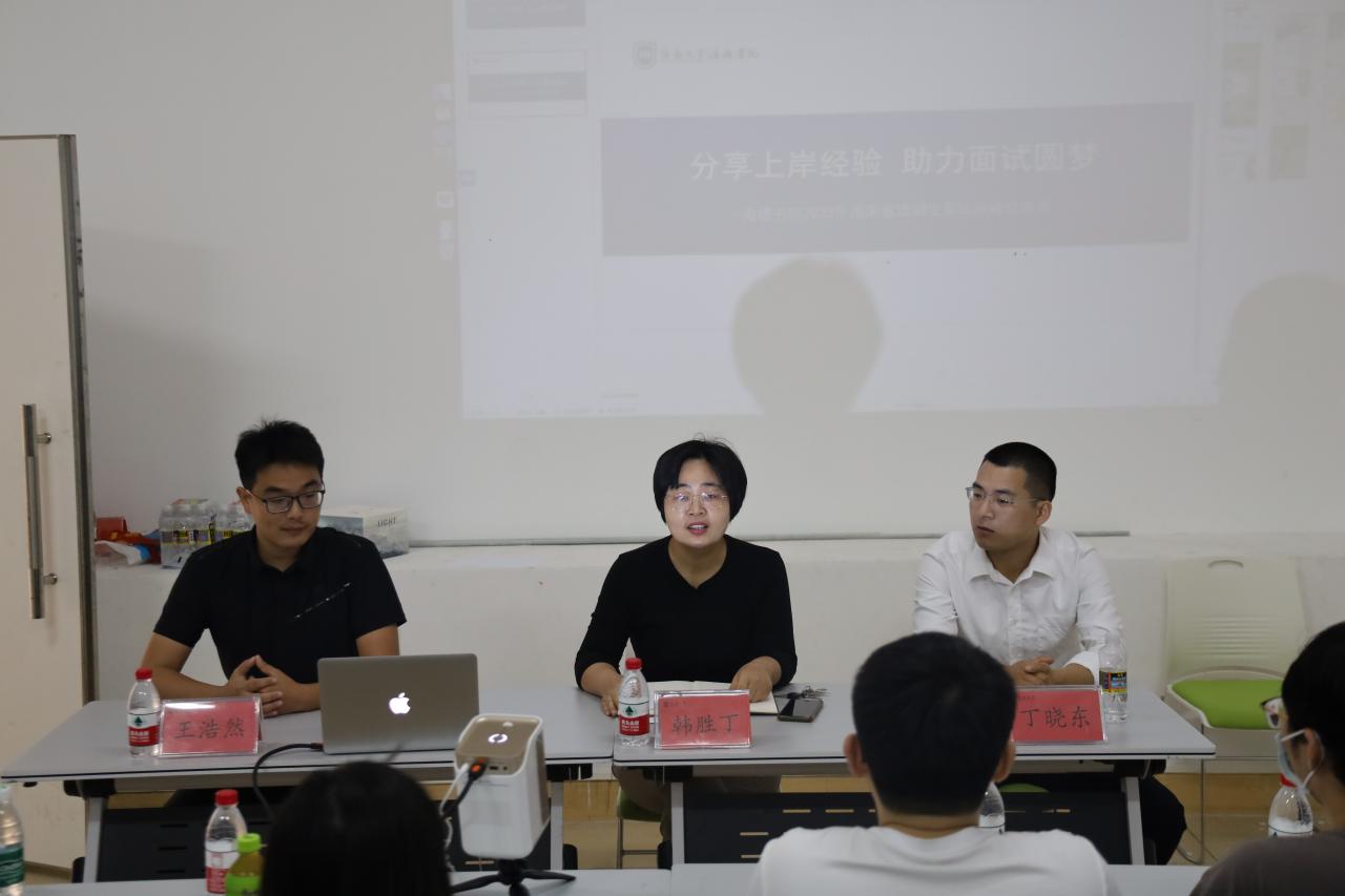 首先海洋之神hy590官网党委书记韩胜丁讲话。韩书记首先对顺利进入选调生面试环节的同学表示祝贺,预祝同学们顺利通过明天的面试。同时对将进入选调生队伍的同学们提出三点期待。一在岗位上,勤勉工作,用实际行动落实初心使命;二在基层,勤于调研,勇于实践,将自己的青春融入海南自贸港建设;三不忘学习,增长本领,更有效更有利的造福人民,为这个伟大的时代贡献自己的力量。