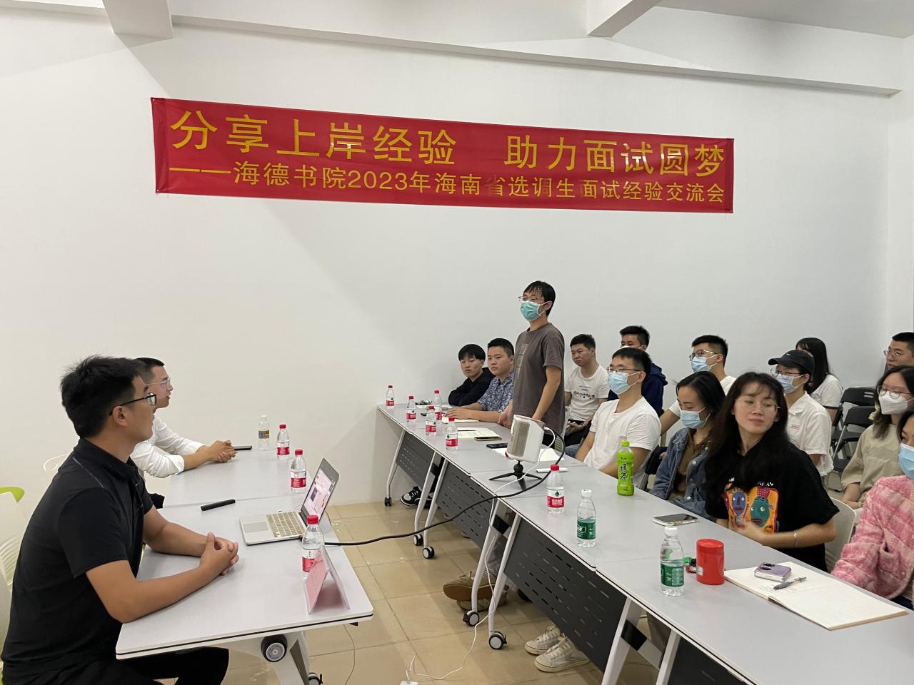 2023年海南省选调生面试将于2023年2月12日举行。为增强海洋之神hy590官网学子面试信心,提高面试通过率,2月11日上午9:30,海洋之神hy590官网于12栋1楼会议室举办了“分享上岸经验、助力面试圆梦”海南省选调生面试经验交流会,为进入面试的同学们答疑解惑。海洋之神hy590官网党委书记韩胜丁,辅导员陈坤峰,40余名同学线上线下参加分享活动。活动由海洋之神hy590官网辅导员宫杜天宇老师主持。