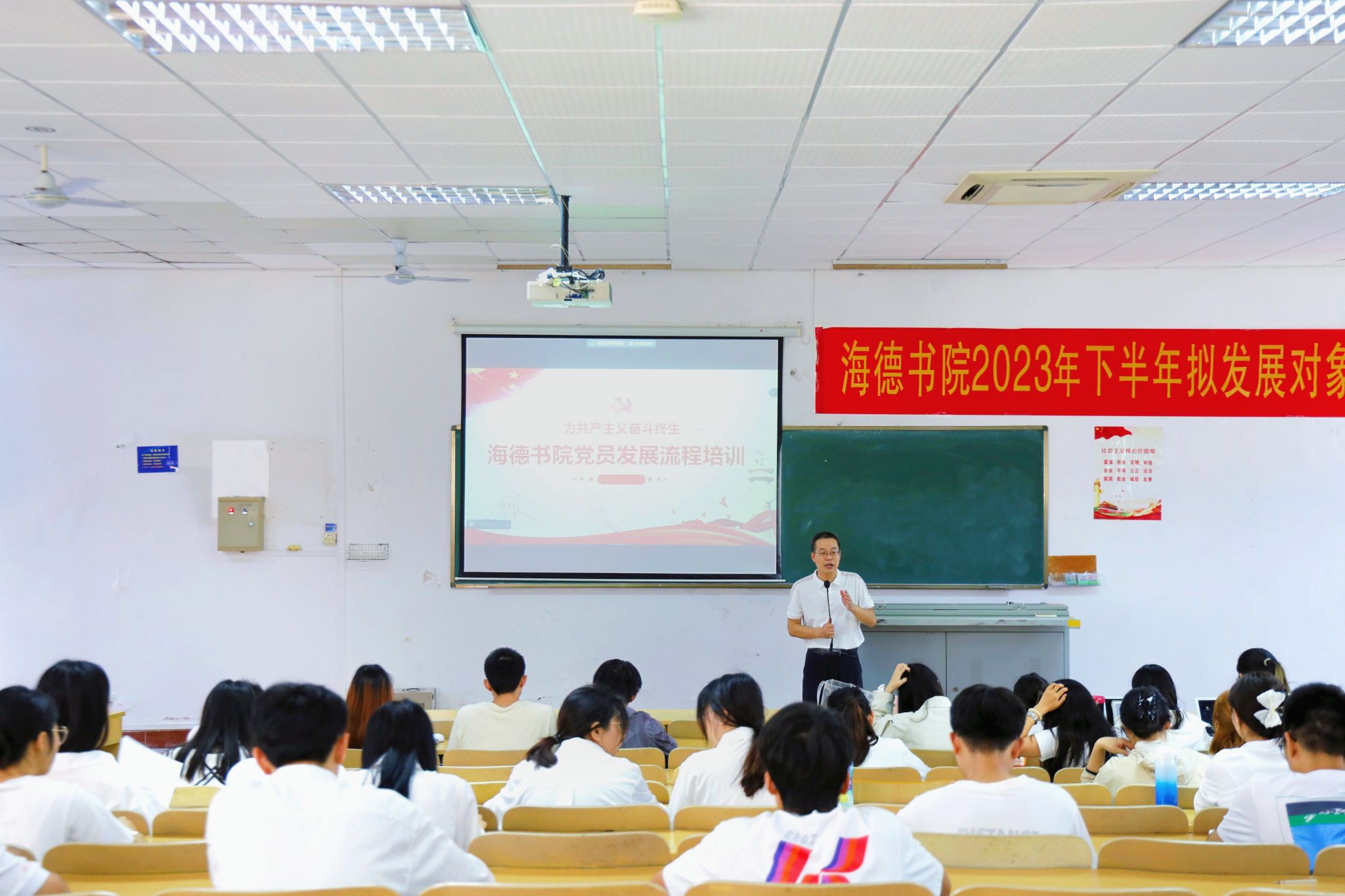 为深入开展学习贯彻习近平新时代中国特色社会主义思想主题教育,提高党员发展对象的政治觉悟、理论水平和组织纪律性,更好地履行党员的职责和使命,2023年12月9日海洋之神hy590官网分党校于2教207教室举行2023下半年拟发展对象培训班。海洋之神hy590官网组织员陈坤峰老师主讲,全体发展对象参加。