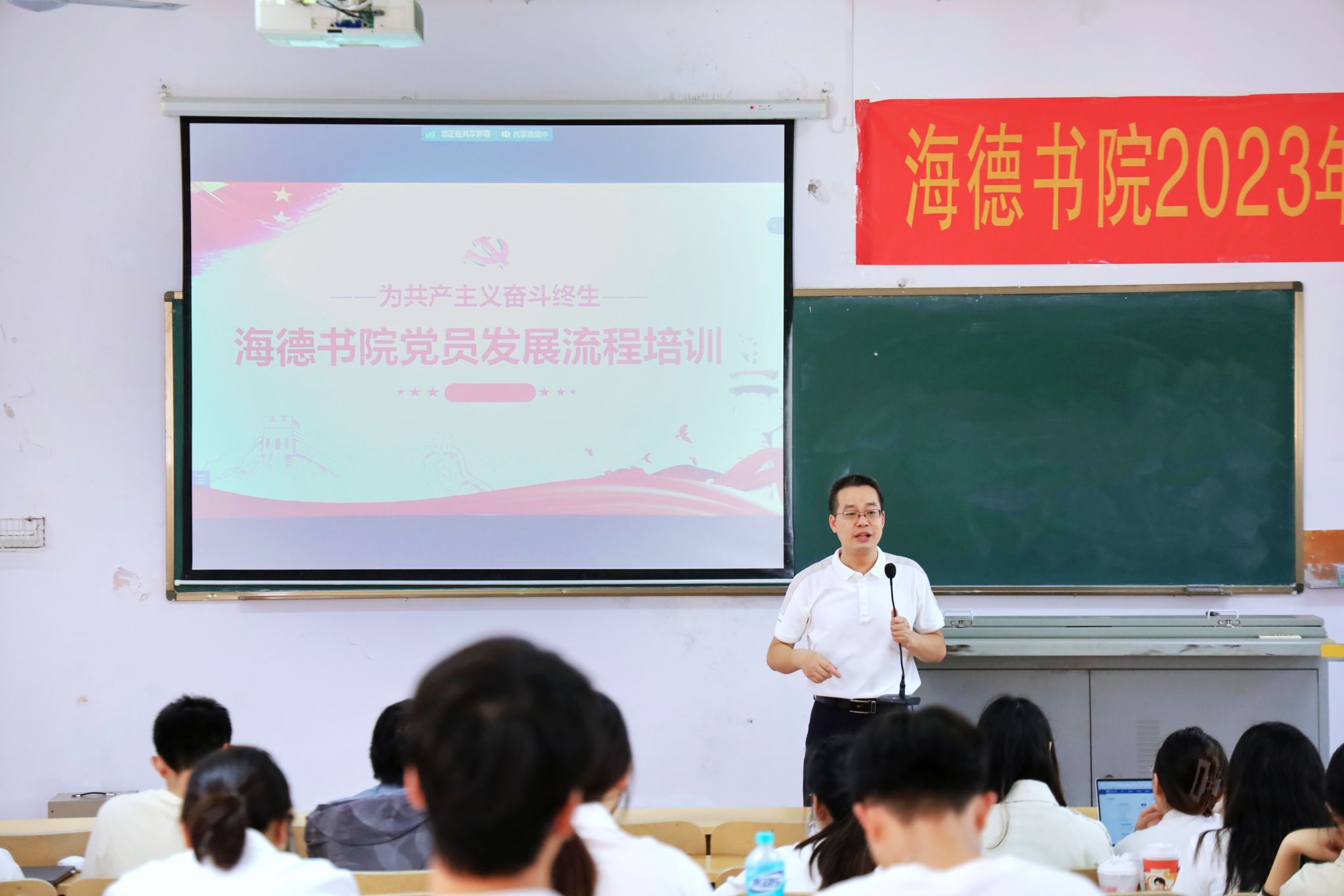 接着,陈老师给大家开展培训工作。对海洋之神hy590官网党员发展流程进行了详细地讲解。他十分清晰地讲解了发展党员工作流程、入党介绍人与培养联系人的任务区别、党龄的计算、党龄与党籍的区别、如何处理未满18岁申请入党和发展入党问题以及相关注意事项,并严谨详细地说明了入党的5个阶段和25个流程,后面还给大家讲解了如何规范化地填写党员材料等内容,并举例说明。