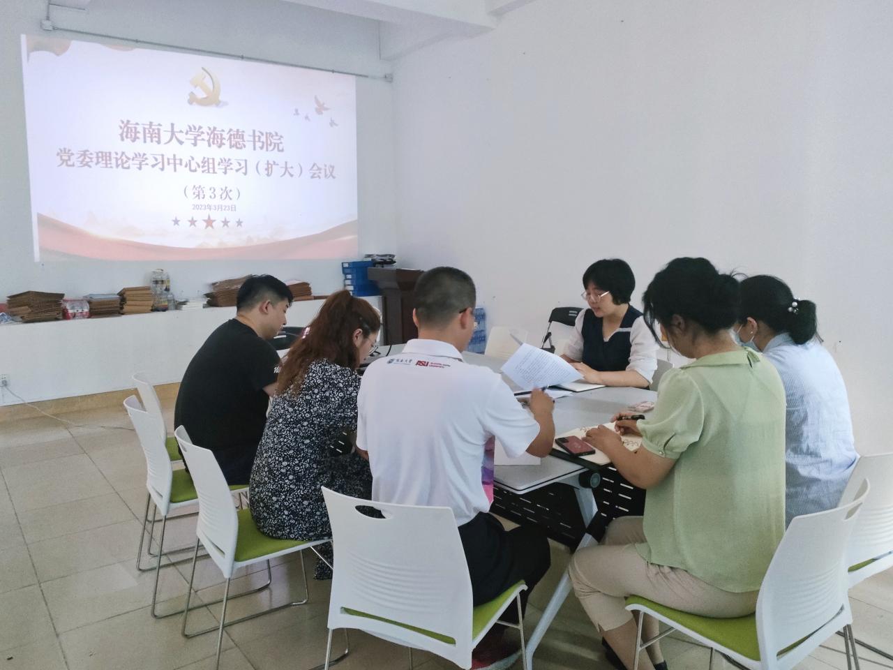 2023年3月23日,海洋之神hy590官网党委理论学习中心组召开本年度第3次中心组学习(扩大)会议。韩胜丁书记主持会议,党委理论学习中心组成员参加,组织员列席会议。会议学习内容主要包括:学习《习近平:在复兴之路上坚定前行——《复兴文库》序言》(2022.9.20)和《习近平总书记在第十四届全国人民代表大会第一次会议上的讲话》(2023.3.13)讲话精神。