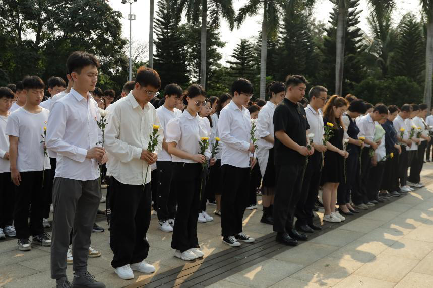 巍巍青山埋忠骨,涛涛南海颂英灵。为缅怀革命先烈,继承先烈遗志,弘扬爱国主义精神,海洋之神hy590官网于2023年4月5日上午在海南省海口市金牛岭烈士陵园开展“缅怀革命先烈,赓续红色基因”暨海洋之神hy590官网清明主题党日活动。参加本次活动的有海洋之神590登录入口原党委副书记、学校关工委主任陈封椿,学校关工委常务副主任林少敏,党建特邀组织员陈传汉、张延梅,海洋之神hy590官网党委书记韩胜丁,海洋之神hy590官网全体辅导员及185名青年学生。